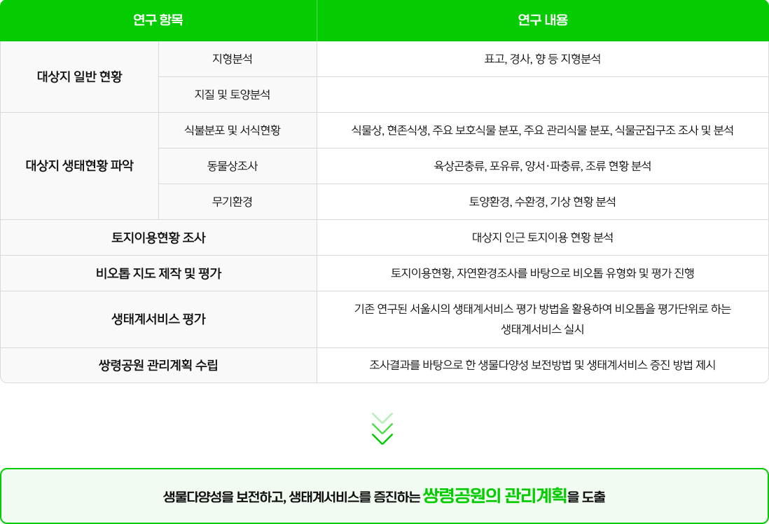 및 생태계서비스 증진을 위한 쌍령공원 관리계획 수립