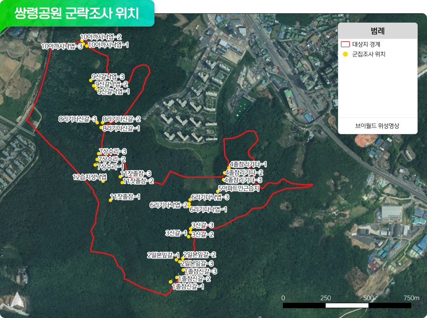 | 쌍령공원 관리계획 수립 | 조사결과를 바탕으로 한 생물다양성 보전방법 및 생태계서비스 증진 방법 제시 | |